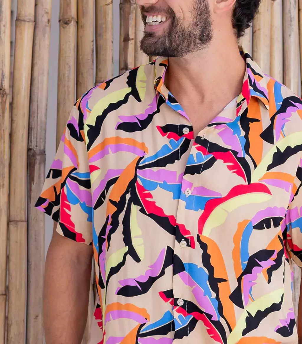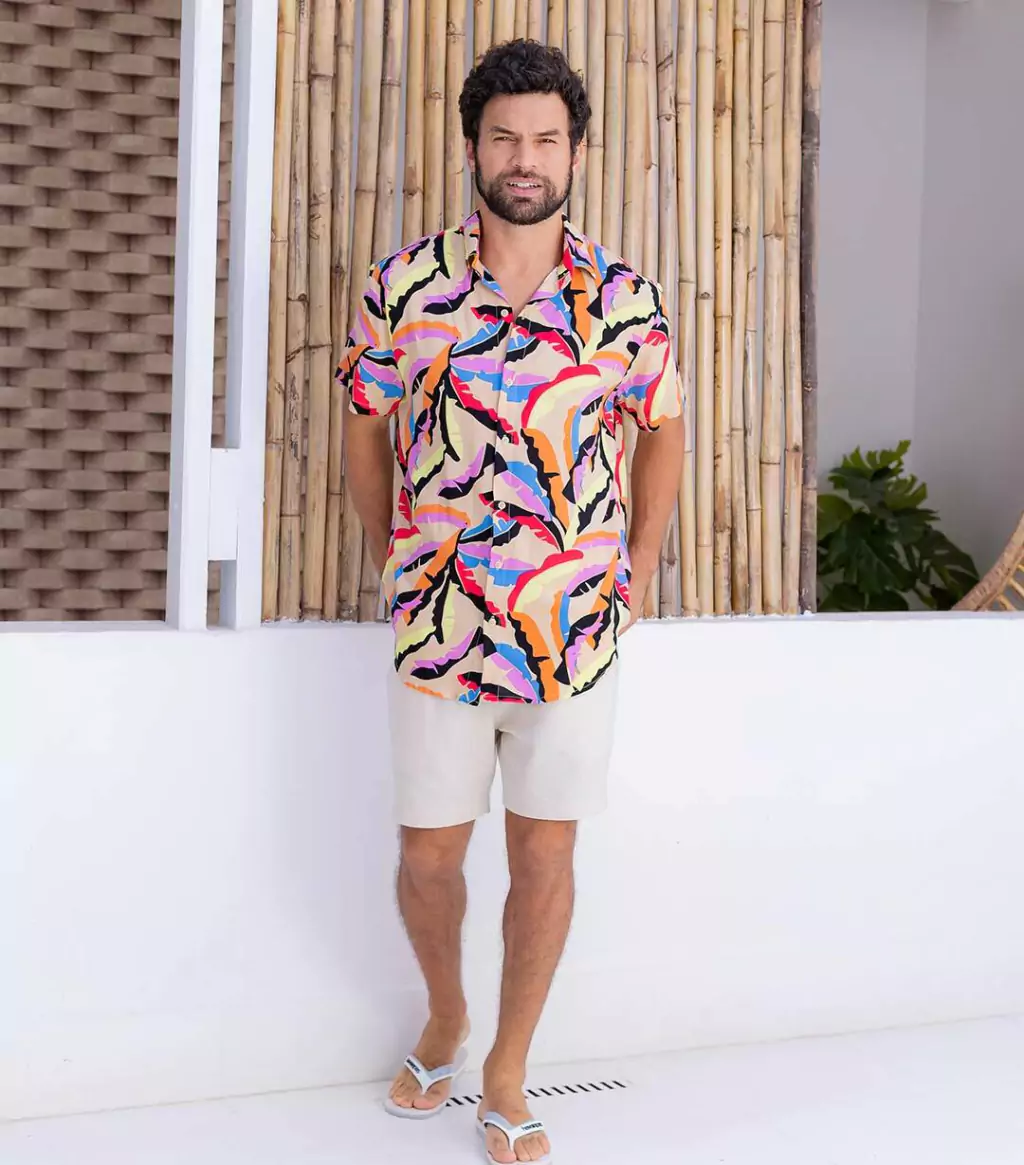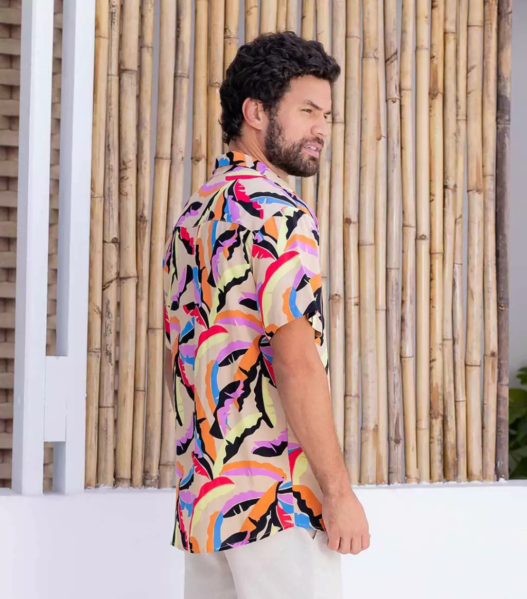 • Manga curta, com gola e fechamento em botões, pode ser usada fechada ou aberta com camisetas.